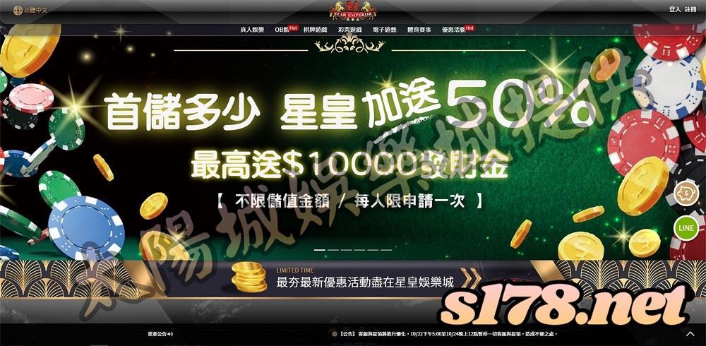 雖然星皇娛樂城只有6項優惠活動,不比克萊柏與威博多,但是有一項活動『註冊就送3000試玩金』,這一項優惠活動看起來好像不錯,只要註冊就送3000點,玩家要注意必須在註冊後馬上申請,只要儲值了就不再享有這項優惠了唷。只不過美中不足的地方就是這3000點試玩金是不可以提領的。接著來看看星皇娛樂城的首儲活動,星皇娛樂城的首儲和其他家娛樂城比較不一樣,不是儲值多少送多少,而是玩家儲值多少就加送50%給玩家,簡單來說就是儲值20000就會送10000。而玩家最在乎的優惠洗碼倍來了,星皇需要16倍,有點高又不會太高,這就要看玩家個別的想法了,有興趣的玩家可以參加優惠!